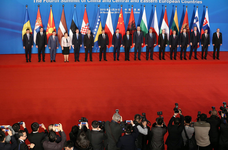 24日下午,第四次中国—中东欧国家领导人会晤开始前,李克强总理与16国领导人合影留念,留下精彩的“16+1”苏州全家福。