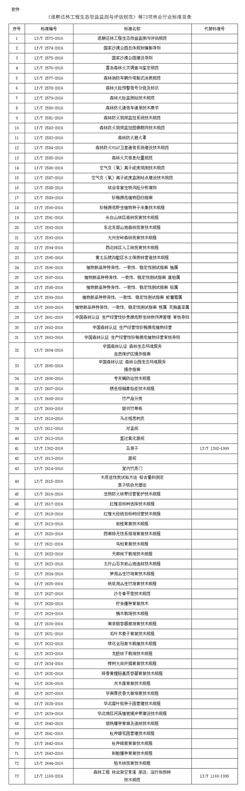 附件:《退耕还林工程生态效益监测与评估规范》等73项林业行业标准目录