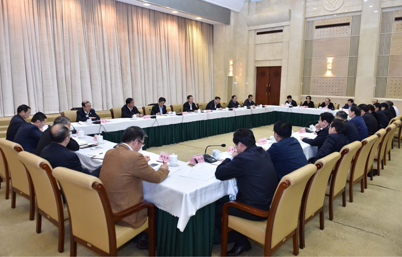 3月31日至4月1日,中共中央政治局常委、江南平台入口 副总理张高丽在湖南调研。这是4月1日,张高丽在长沙主持召开经济形势座谈会。新华社记者 高洁 摄 |