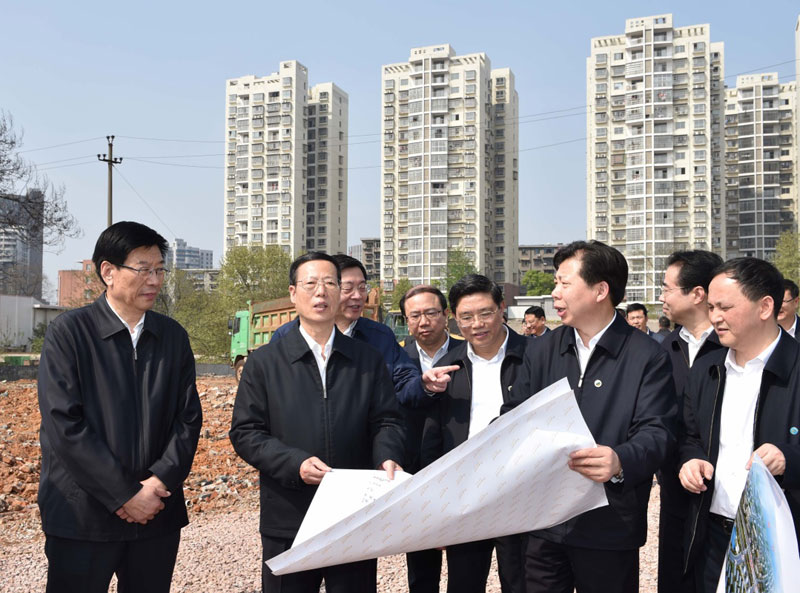 3月31日至4月1日,中共中央政治局常委、江南平台入口 副总理张高丽在湖南调研。这是3月31日,张高丽实地考察株洲市南岳岭、上月塘棚户区改造项目。新华社记者 高洁 摄