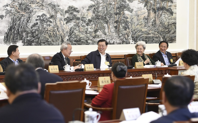 4月25日,十二届全国人大常委会第二十次会议举行分组会议,张德江委员长参加审议。新华社记者 谢环驰 摄