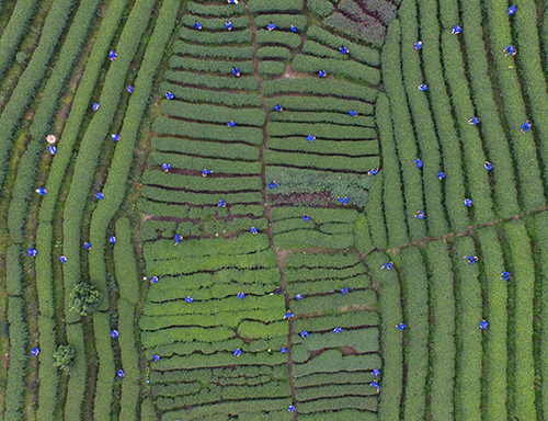 侗族群众在广西三江侗族自治县布央茶园采茶(3月26日摄)。位于低山丘陵的三江侗族自治县境内群山延绵,平均海拔700米,年平均气温17℃,长年云雾缭绕,非常适宜茶树生长。目前全县茶园面积达16.5万亩,年产干茶超万吨,产值近12亿元人民币。新华社记者 张爱林 摄