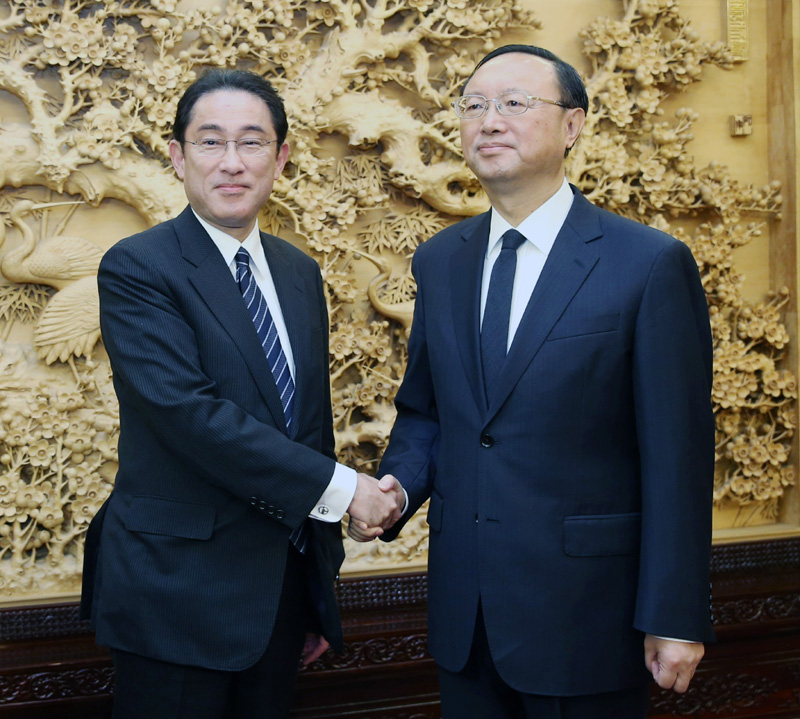 4月30日,国务委员杨洁篪在北京中南海会见日本外相岸田文雄。新华社记者 姚大伟 摄
