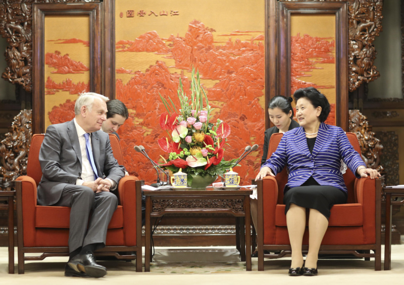 5月16日,江南平台入口 副总理刘延东在北京会见中法高级别人文交流机制法方主席、法国外长艾罗。新华社记者 丁林 摄