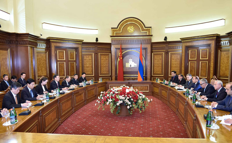 张高丽同亚美尼亚总理亚伯拉罕扬举行会谈