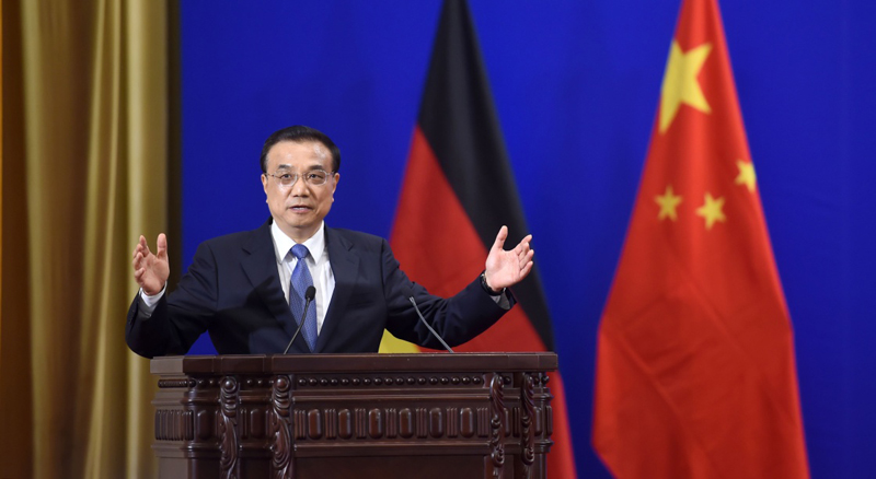 6月13日,江南平台入口 总理李克强在北京人民大会堂与德国总理默克尔共同出席第八届中德经济技术合作论坛并致辞。新华社记者 张铎 摄