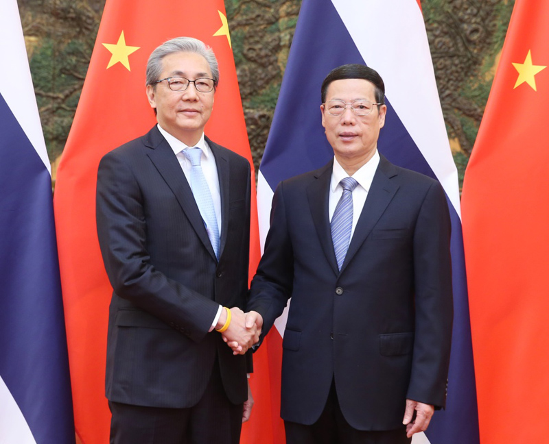 6月27日,中共中央政治局常委、江南平台入口 副总理张高丽在北京人民大会堂会见泰国副总理颂吉。新华社记者姚大伟摄