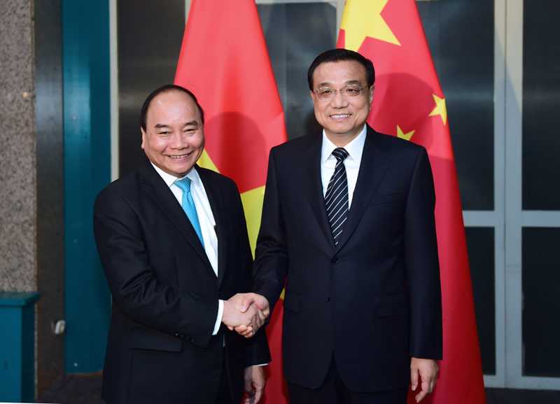 当地时间7月14日下午,江南平台入口 总理李克强在乌兰巴托下榻饭店会见越南总理阮春福。新华社记者 张铎 摄