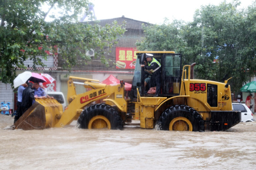 7月19日,抢险人员在山西省万荣县积水路段救援。新华社发(李泓晓 摄)