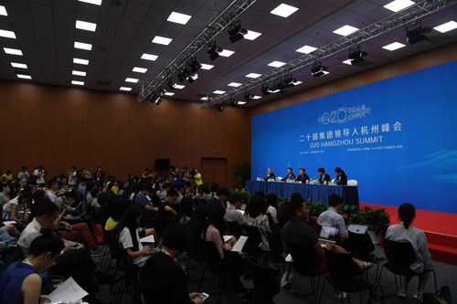 9月1日,2016年二十国集团工商界活动(B20)在杭州举行新闻发布会。新华社记者 陈晔华 摄