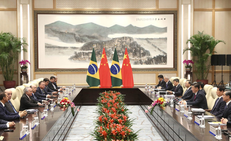 习近平指出,中巴友好得到两国历届政府和社会各界坚定支持,是成熟而牢固的国家间关系。中国对巴西发展前景充满信心,对中巴合作充满信心。中巴要继续坚定将对方视为自身发展机遇和伙伴,加强两国合作,推动中巴全面战略伙伴关系不断迈上新台阶。