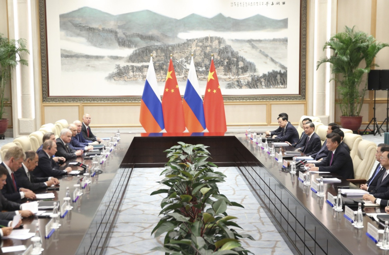 9月4日,国家主席习近平在杭州会见在华出席二十国集团领导人杭州峰会的俄罗斯总统普京。新华社记者 丁林 摄