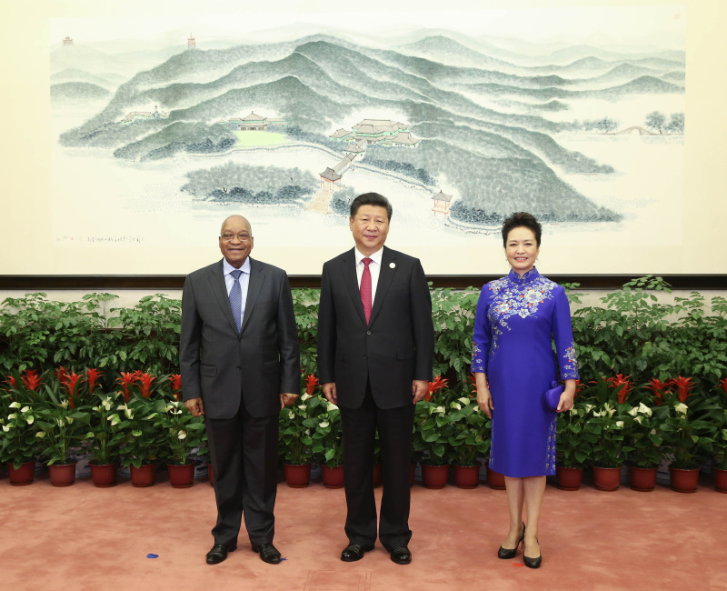 这是习近平和彭丽媛迎候南非总统祖马。新华社记者 庞兴雷 摄