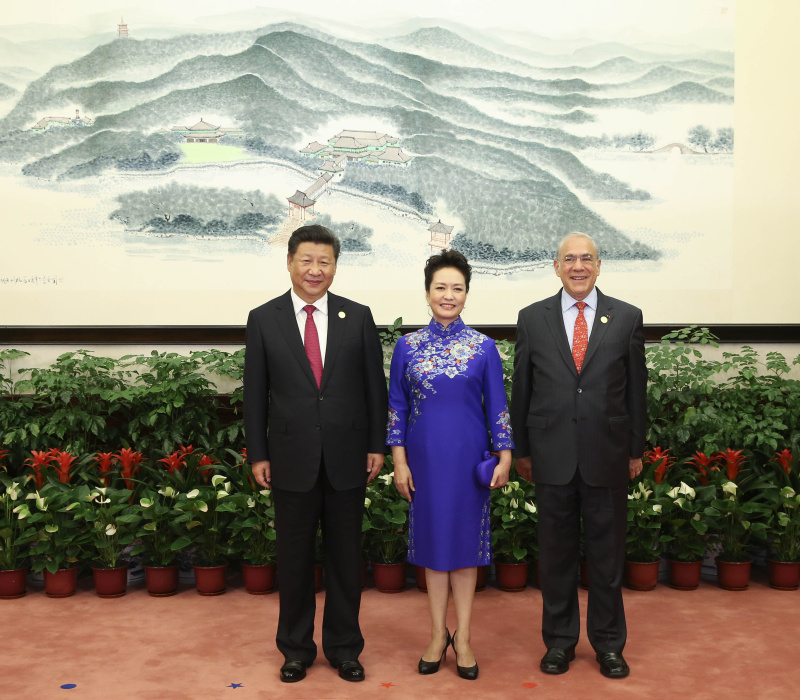 这是习近平和彭丽媛迎候经济合作与发展组织秘书长古里亚。新华社记者 庞兴雷 摄