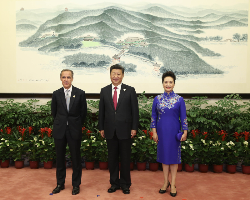 这是习近平和彭丽媛迎候金融稳定理事会主席卡尼。新华社记者 庞兴雷 摄