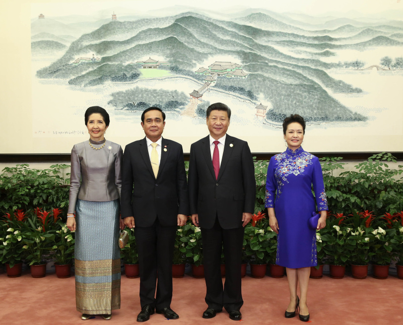 这是习近平和彭丽媛迎候泰国总理巴育夫妇。新华社记者 庞兴雷 摄