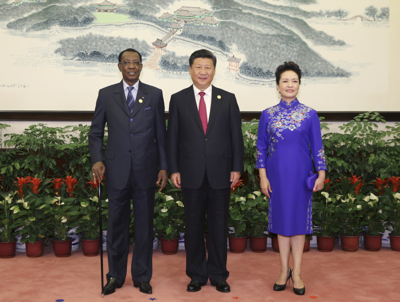 这是习近平和彭丽媛迎候乍得总统代比。新华社记者 丁林 摄