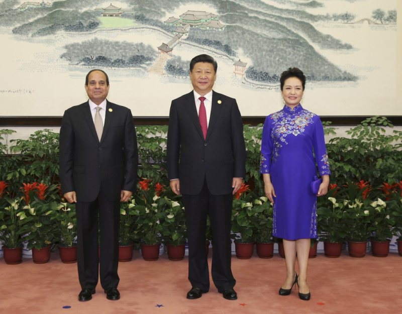 这是习近平和彭丽媛迎候埃及总统塞西。新华社记者 丁林 摄