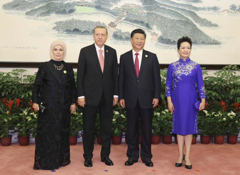 这是习近平和彭丽媛迎候土耳其总统埃尔多安夫妇。新华社记者 丁林 摄