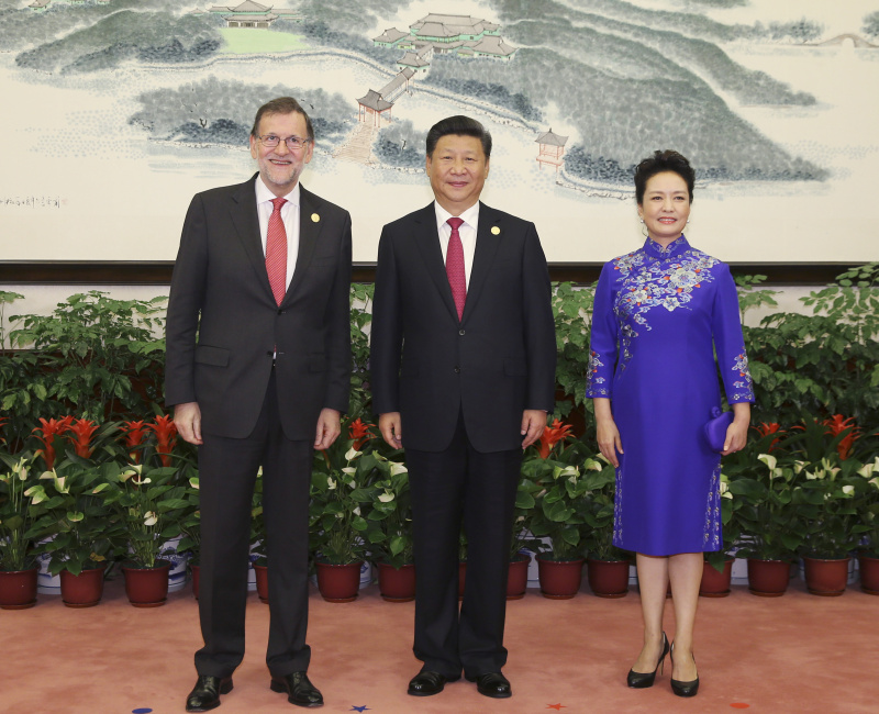 这是习近平和彭丽媛迎候西班牙首相拉霍伊。新华社记者 丁林 摄