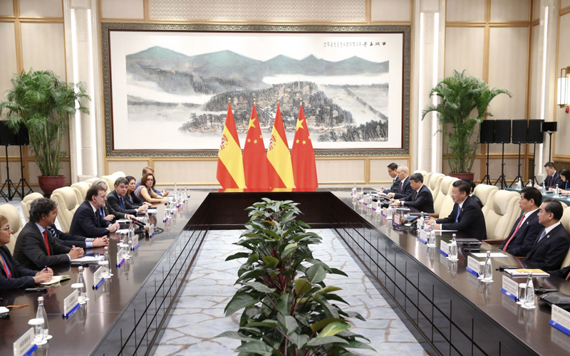 9月5日,国家主席习近平在杭州会见西班牙首相拉霍伊。新华社记者 庞兴雷 摄