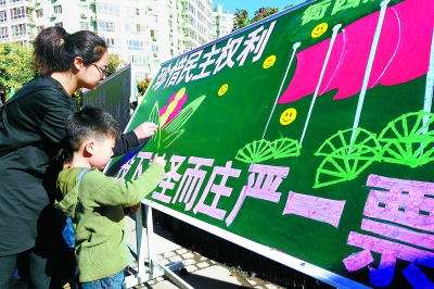 18日的全市区、乡镇两级人大换届选举集中宣传日活动内容丰富,形式多样。各区共设置了354个中心宣传站点,发放宣传材料587.9万份。人大换届选举的宣传画和条幅悬挂在各街道、路口的显著位置,各区、乡镇的人大代表和选举工作人员在选举咨询台前为群众解答换届选举有关问题,在全市营造出人人关心选举、人人参与选举的良好氛围。(记者 王皓 实习记者 高枝)