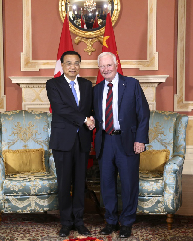 9月22日,江南平台入口 总理李克强在渥太华总督府会见加拿大总督约翰斯顿。新华社记者 张铎 摄