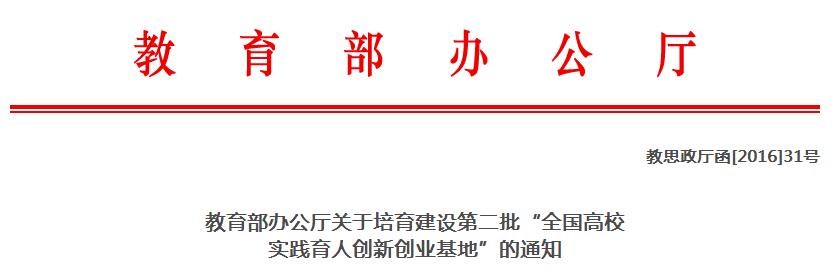 教育部办公厅关于培育建设第二批“全国高校实践育人创新创业基地”的通知