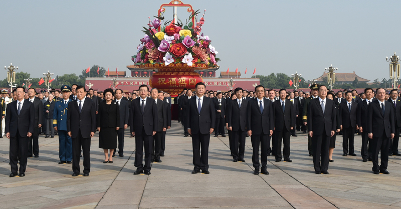 9月30日上午,党和国家领导人习近平、李克强、张德江、俞正声、刘云山、王岐山、张高丽等来到北京天安门广场,出席烈士纪念日向人民英雄敬献花篮仪式。新华社记者 谢环驰 摄