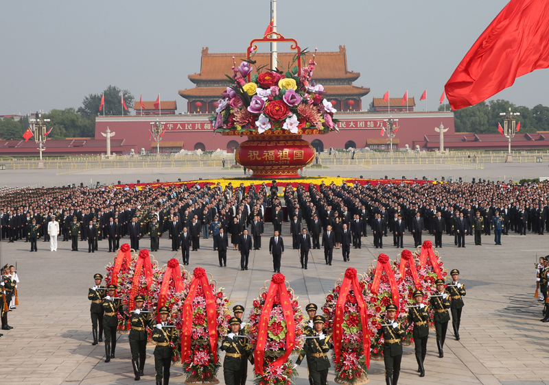 9月30日上午,党和国家领导人习近平、李克强、张德江、俞正声、刘云山、王岐山、张高丽等来到北京天安门广场,出席烈士纪念日向人民英雄敬献花篮仪式。新华社记者 庞兴雷 摄