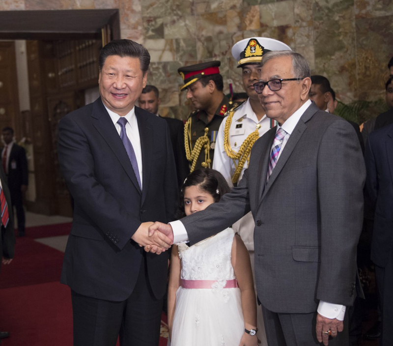 10月14日,国家主席习近平在达卡会见孟加拉国总统哈米德。新华社记者 谢环驰 摄