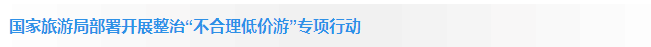 近日,国家旅游局印发《国家旅游局关于组织开展整治“不合理低价游”专项行动的通知》,在全国组织开展为期半年的整治“不合理低价游”专项行动。此次专项行动的主要任务是严打低价产品、遏制“不合理低价游”势头,严查合同签订、切断“不合理低价游”链条,严管购物场所、堵住“不合理低价游”源头。
