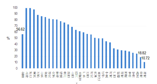图2 2016年全国配备多媒体教学设备的中小学比例情况