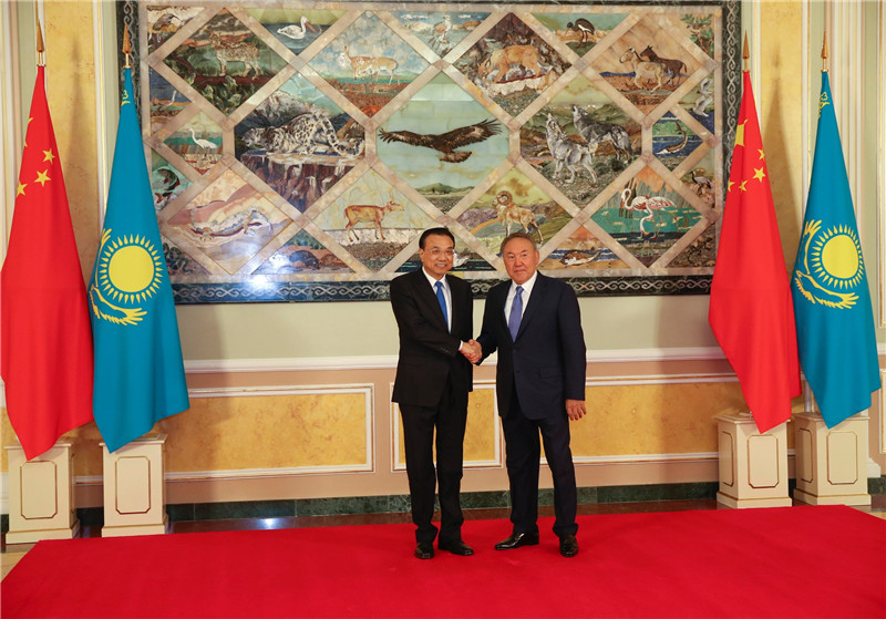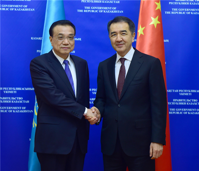 李克强指出,中方愿将丝绸之路经济带倡议与哈方“光明之路”新经济政策更好对接,开辟两国互利合作新阶段。中哈产能合作契合双方发展需要,启动两年来取得了一批重要早期收获,成为两国务实合作新亮点。希望双方以产能合作为载体,深挖潜力,推进全方位互利合作,带动互联互通等大项目建设不断取得新成果,更好造福两国人民。中方愿同哈方深化在上海合作组织等框架下的交流协作,维护地区和平稳定。