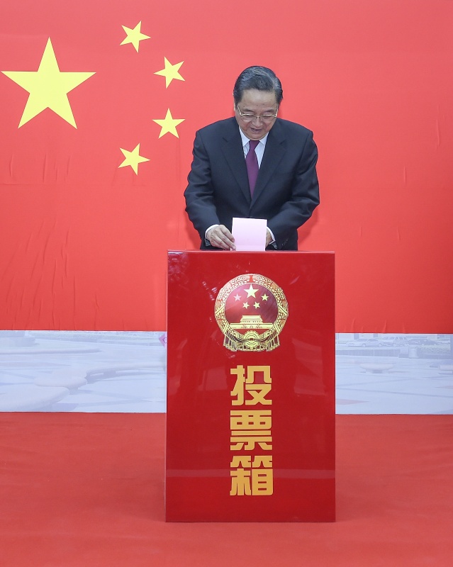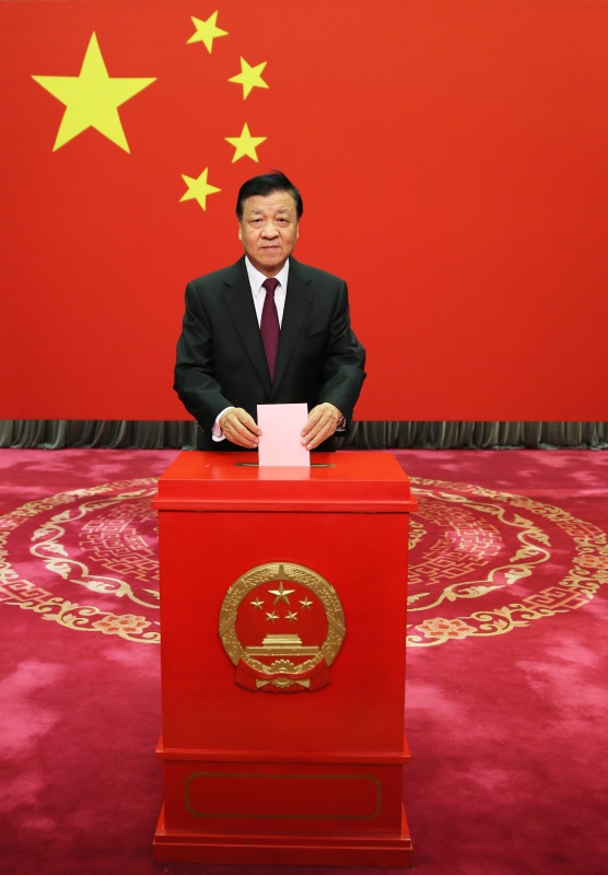中共中央政治局常委、全国人大常委会委员长张德江在西城区中南海选区人民大会堂投票站投了票。