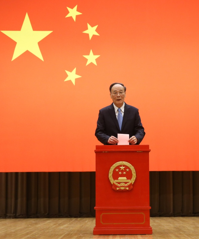 中共中央政治局常委、中央纪委书记王岐山在西城区大觉选区中央纪委机关投票站投了票。
