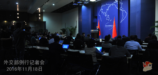 答:我们也注意到日本首相安倍晋三与美国当选总统特朗普进行了非正式的会晤,目前我们还没有看到有关会晤的具体情况。我想指出,中方乐见国与国之间发展正常的双边关系,希望有关国家间的合作与双边安排不损害第三方利益,应尊重地区国家的安全关切,有利于地区的和平稳定。