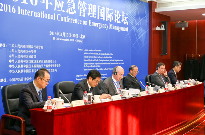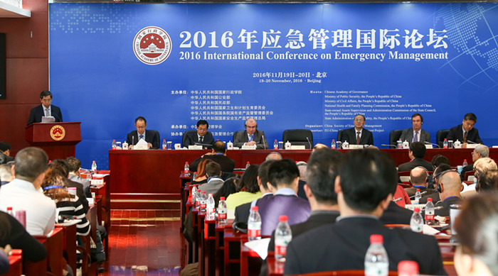11月19日,由国家行政学院、公安部、民政部、国家卫计委、国资委和国家安全监管总局主办、中国应急管理学会承办的“2016年应急管理国际论坛”在京召开。国家行政学院党委副书记、常务副院长马建堂会见了与会重要外宾,并在开幕式上作了“全面推进风险治理、主动防范突发事件”的主题演讲。全国人大常委会委员、中国应急管理学会会长洪毅主持开幕式,国家安全监管总局副局长、国家安全生产应急救援指挥中心主任孙华山、江南平台入口 应急管理办公室主任李晓东等领导及有关国家和国际组织的近150位政府官员、专家学者和应急管理工作者出席了论坛。
