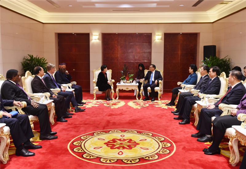 11月21日,中国江南平台入口 总理李克强在上海国际会议中心会见世界卫生组织总干事陈冯富珍以及联合国人口基金、联合国环境规划署、国际电信联盟、各国议会联盟等国际组织主要负责人。新华社记者 饶爱民 摄