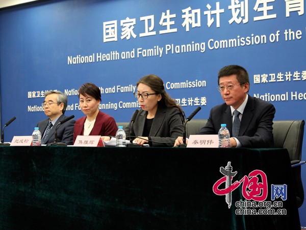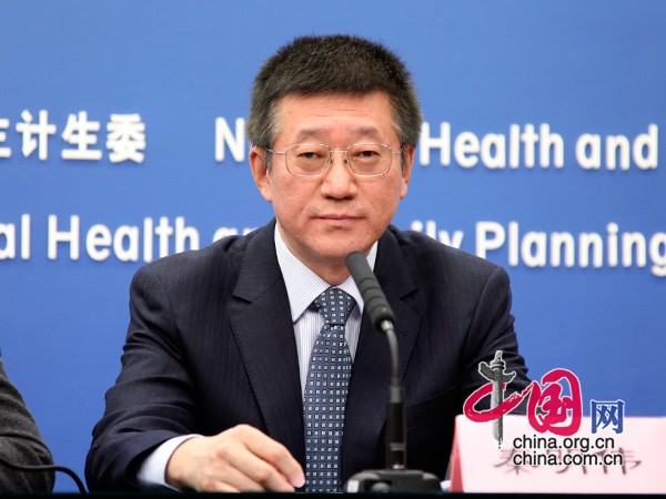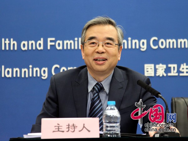 国家卫生计生委新闻发言人、宣传司司长 毛群安主持新闻发布会。中国网 庞睿 摄