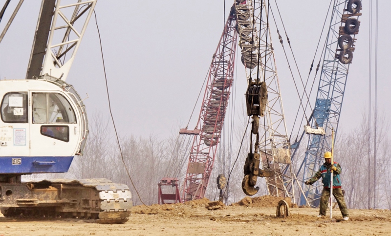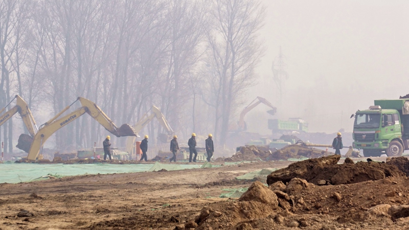 2月20日,工作人员在北京市延庆区世园会园区施工。