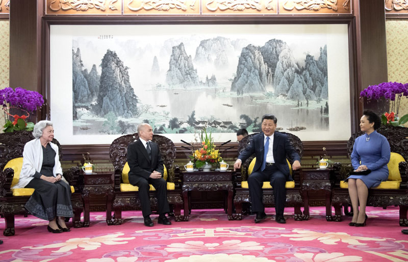 习近平会见柬埔寨国王西哈莫尼和太后莫尼列