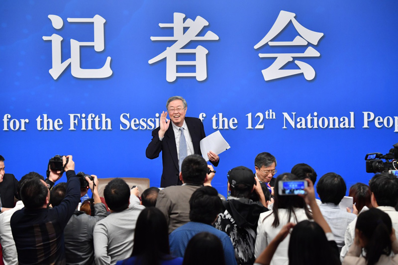 3月10日,十二届全国人大五次会议新闻中心举行记者会,邀请中国人民银行行长周小川、副行长易纲、副行长兼国家外汇管理局局长潘功胜、副行长范一飞就“金融改革与发展”的相关问题回答中外记者的提问。
