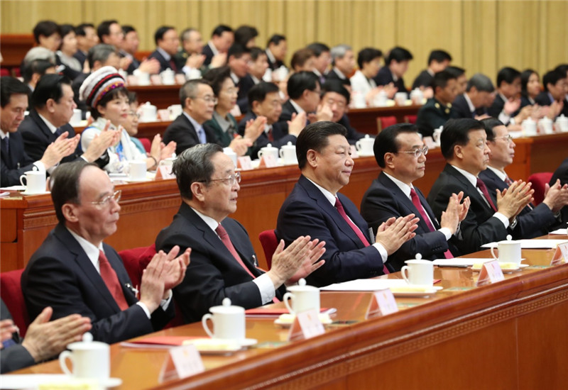 习近平、李克强、俞正声、刘云山、王岐山、张高丽和大会主席团成员在主席台就座。