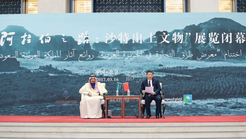 3月16日,国家主席习近平在北京人民大会堂同沙特阿拉伯王国国王萨勒曼举行会谈。这是会谈后,两国元首共同出席在国家博物馆举行的“阿拉伯之路-沙特出土文物展”闭幕式。新华社记者 姚大伟 摄