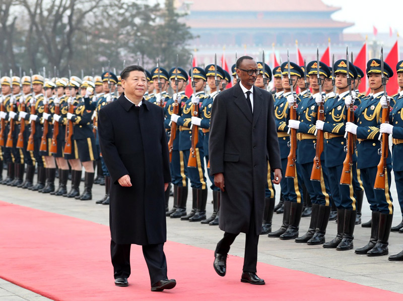 3月17日,国家主席习近平在北京人民大会堂同卢旺达总统卡加梅举行会谈。会谈前,习近平在人民大会堂东门外广场为卡加梅举行欢迎仪式。新华社记者 刘卫兵 摄