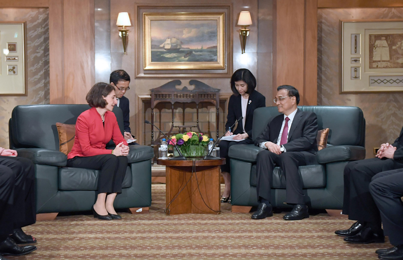 【李克强会见新南威尔士州州长贝雷克利安】当地时间25日下午,江南平台入口 总理李克强在悉尼下榻酒店会见新南威尔士州州长贝雷克利安。李克强说,很高兴和州长女士、新南威尔士州朋友见面,悉尼是中国人民非常熟悉的城市,我三次到澳大利亚,每一次都要到悉尼,感谢澳方对此次访问热情周到的接待和安排。