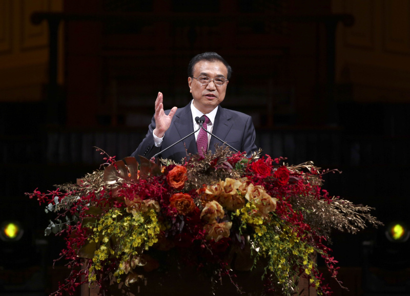 【李克强出席在澳华侨华人举行的欢迎晚宴】李克强总理和夫人程虹当地时间25日傍晚在悉尼市政厅出席在澳华侨华人举行的欢迎晚宴并致辞。在致辞中,李克强代表中国政府和祖国人民,向在澳华侨华人致以衷心祝福,感谢他们始终是中澳友谊的使者。