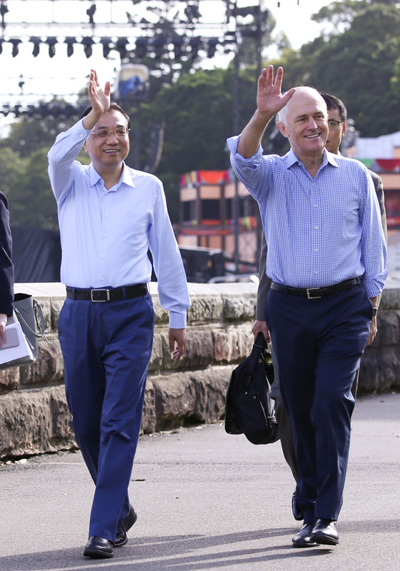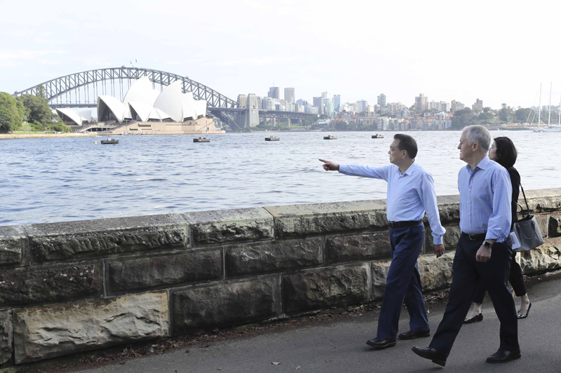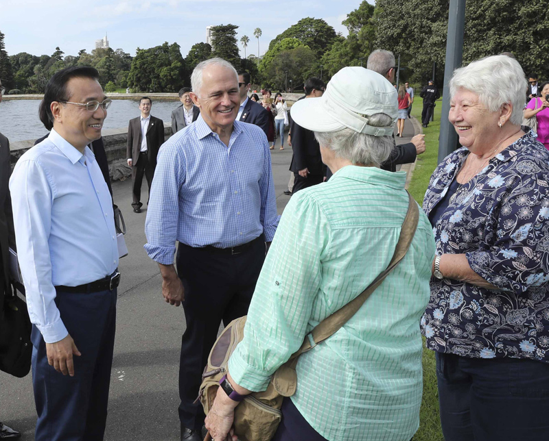 此前,李克强总理在悉尼访问时,与澳大利亚总理特恩布尔把外交舞台从会场“搬到”了户外。