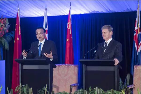 27日,李克强总理和新西兰总理英格利希在惠灵顿会谈后,共同见证了两国关于经贸、农业、电子商务、教育、知识产权保护、环保等领域9份合作协议的签署,其中包括中新关于“一带一路”合作的谅解备忘录,新西兰再次成为首个同中国签署此类协议的西方发达国家。